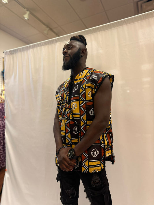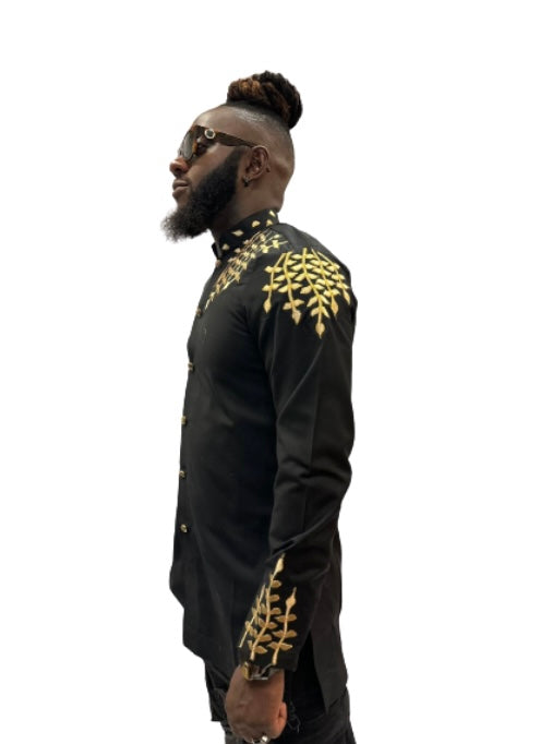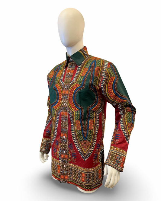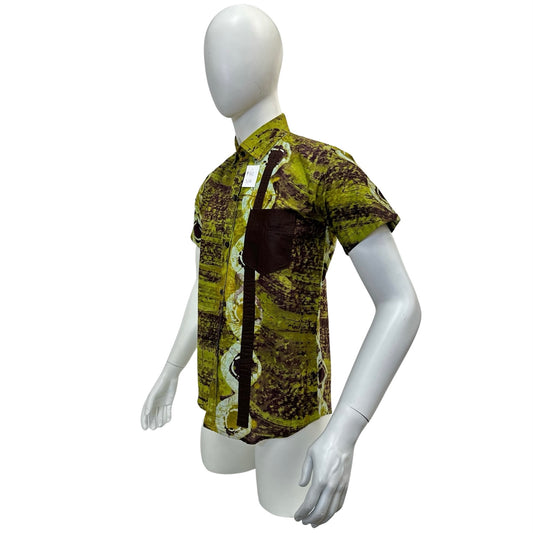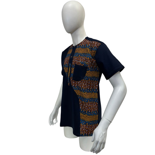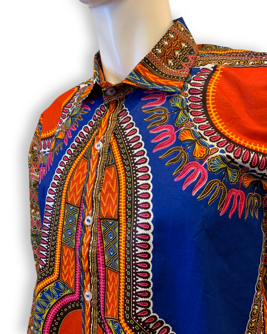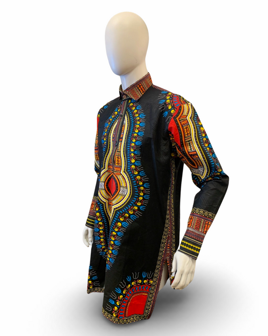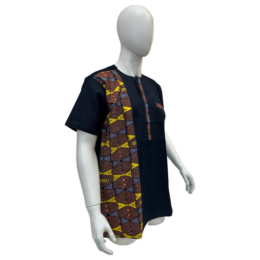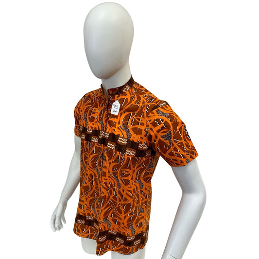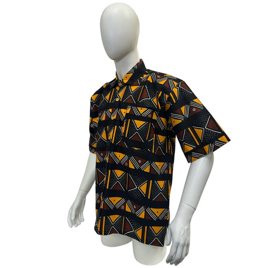 Men’s Ankara Dress Shirt - Black/Brown/Orange