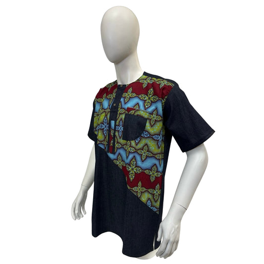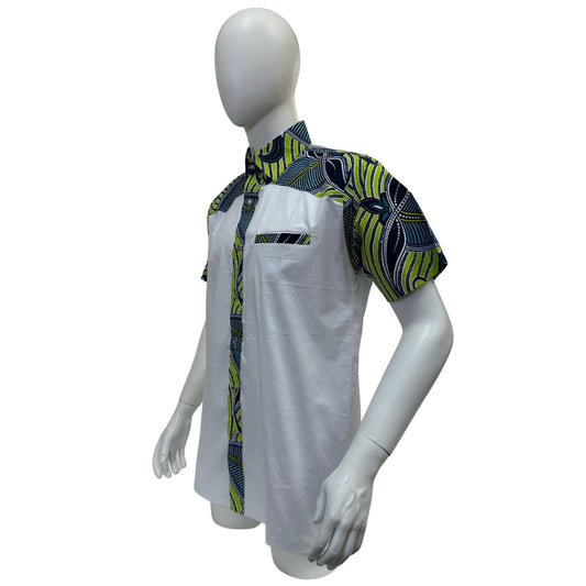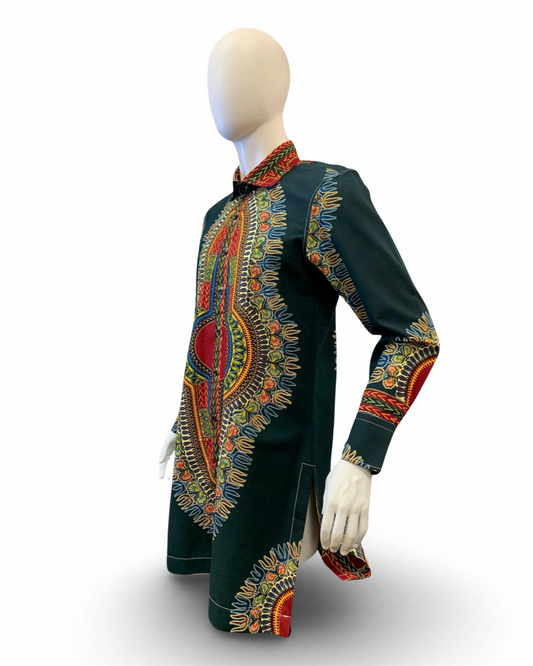 Men’s Ankara Dress Shirt - Blue & Green Ankara