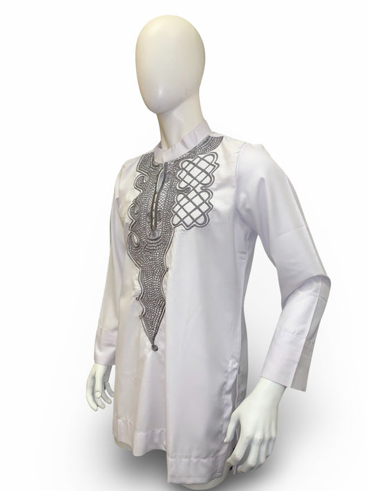 Men’s Formal Embroidery Kaftan 2pc Set (White & Silver)