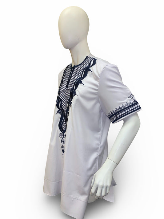 Men’s Formal Embroidery 2pc Kaftan Set (White & Blue)