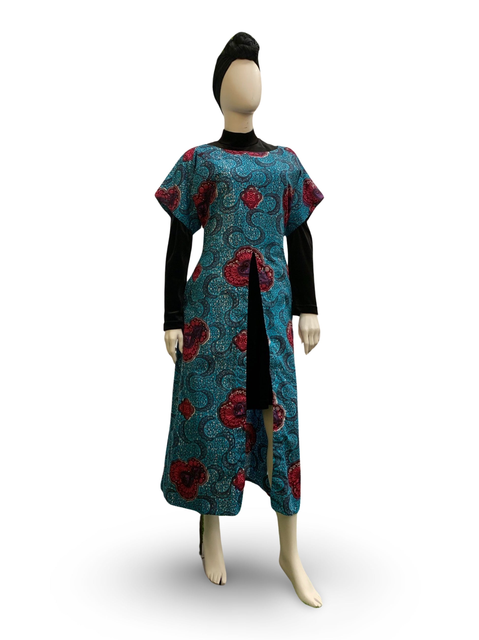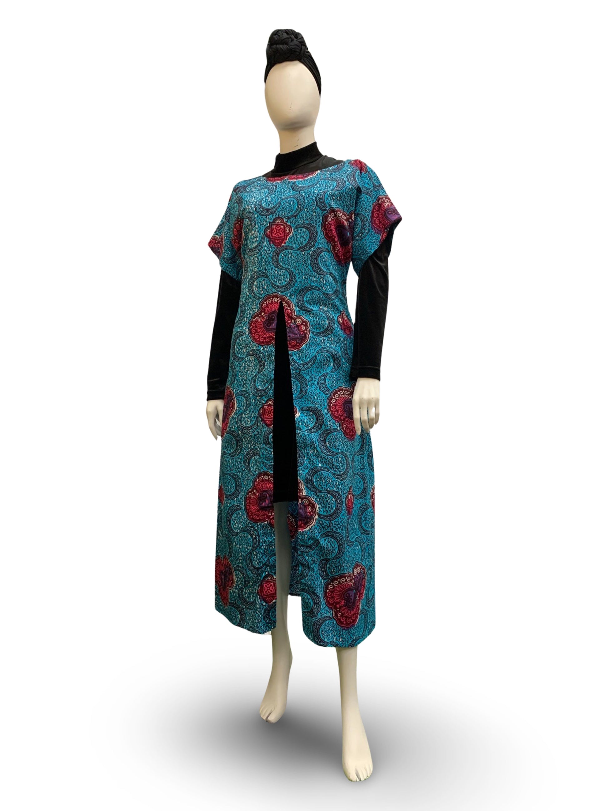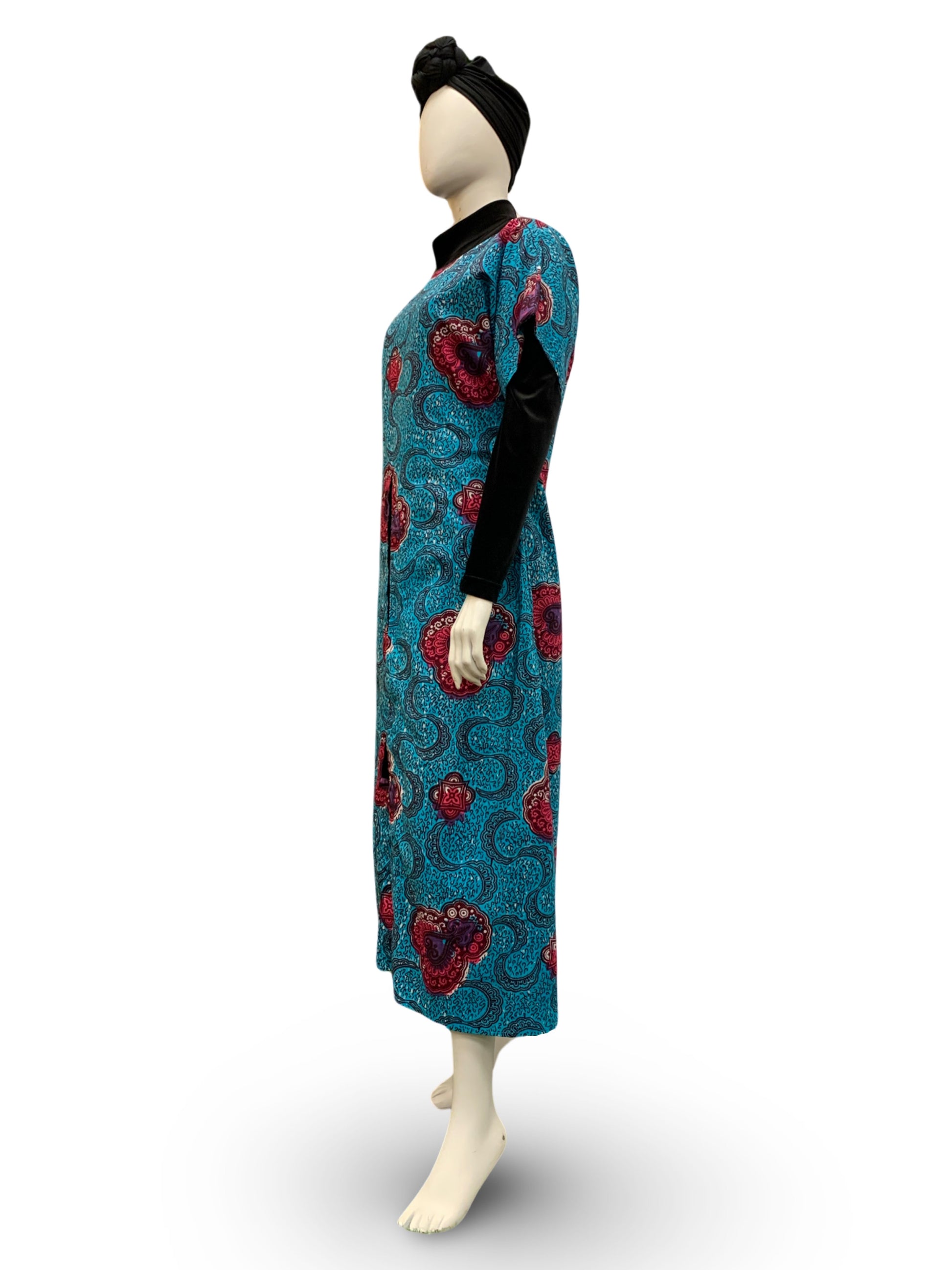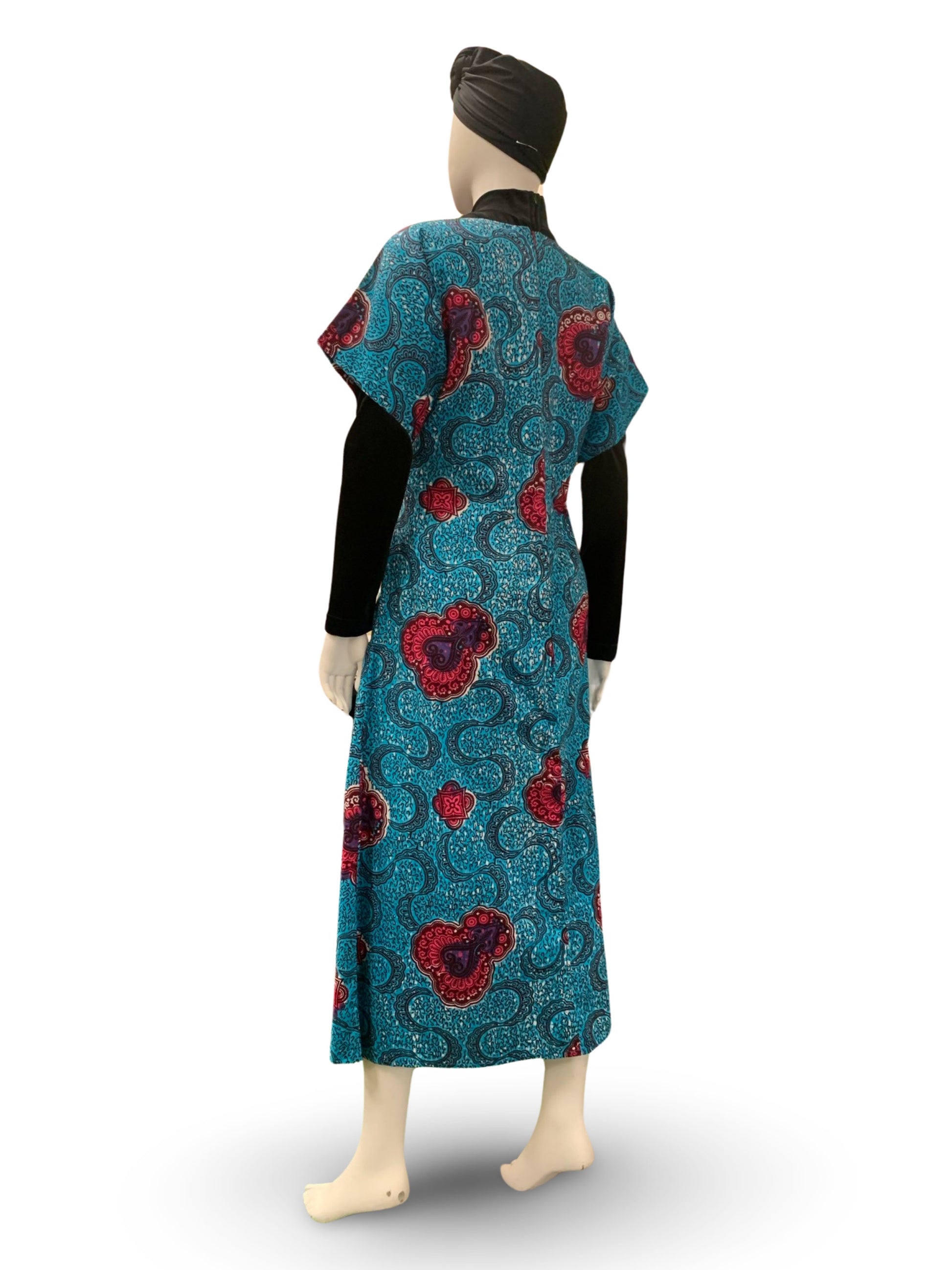 Women’s Ankara Short Sleeve Dress (Blue & Pink)