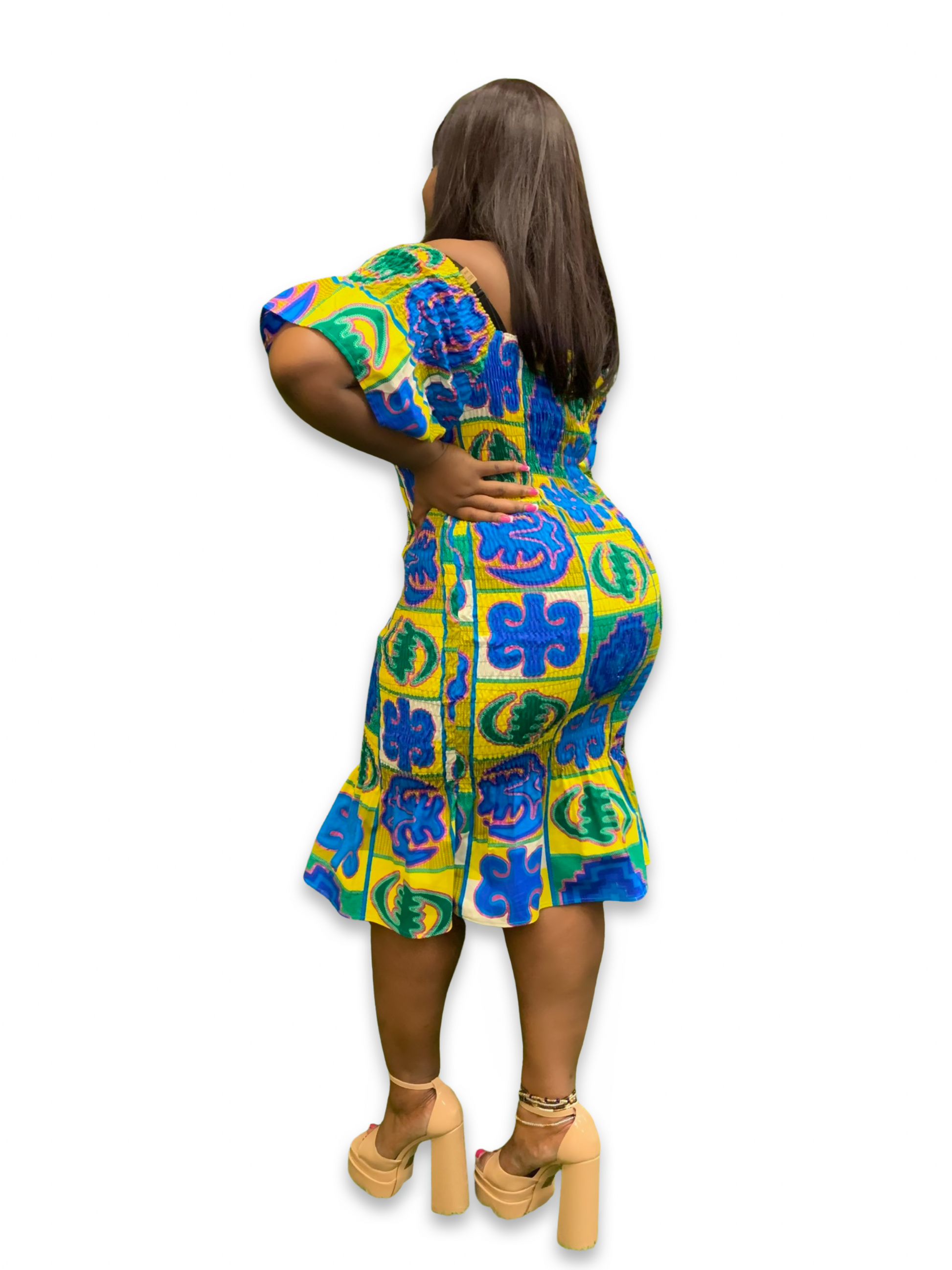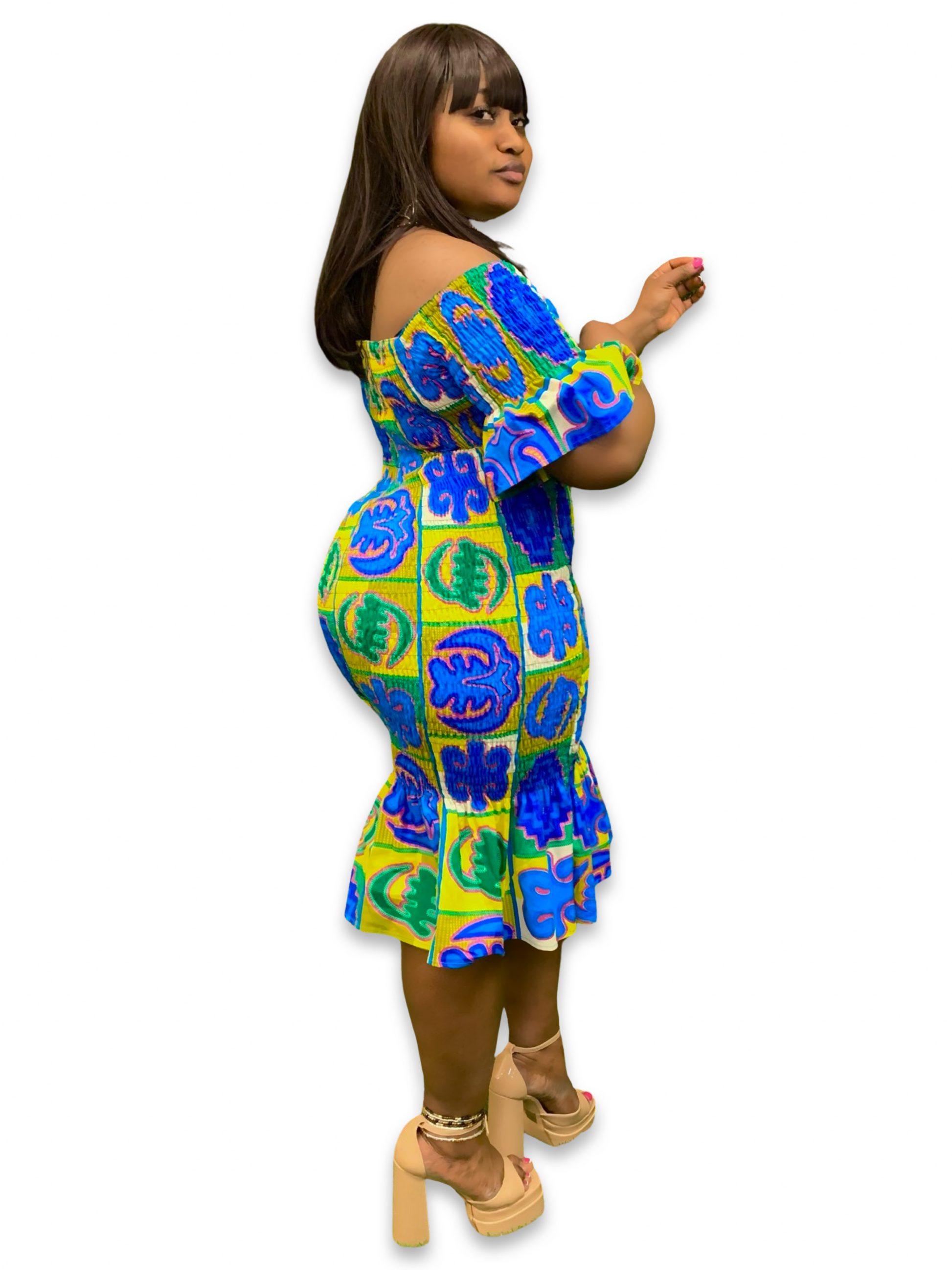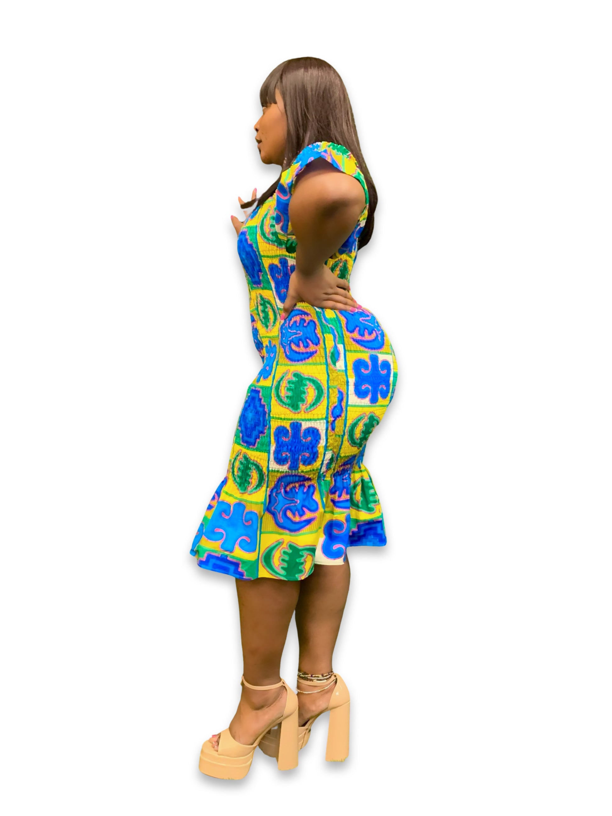 Ankara Elastic Midi Bodycon Dress