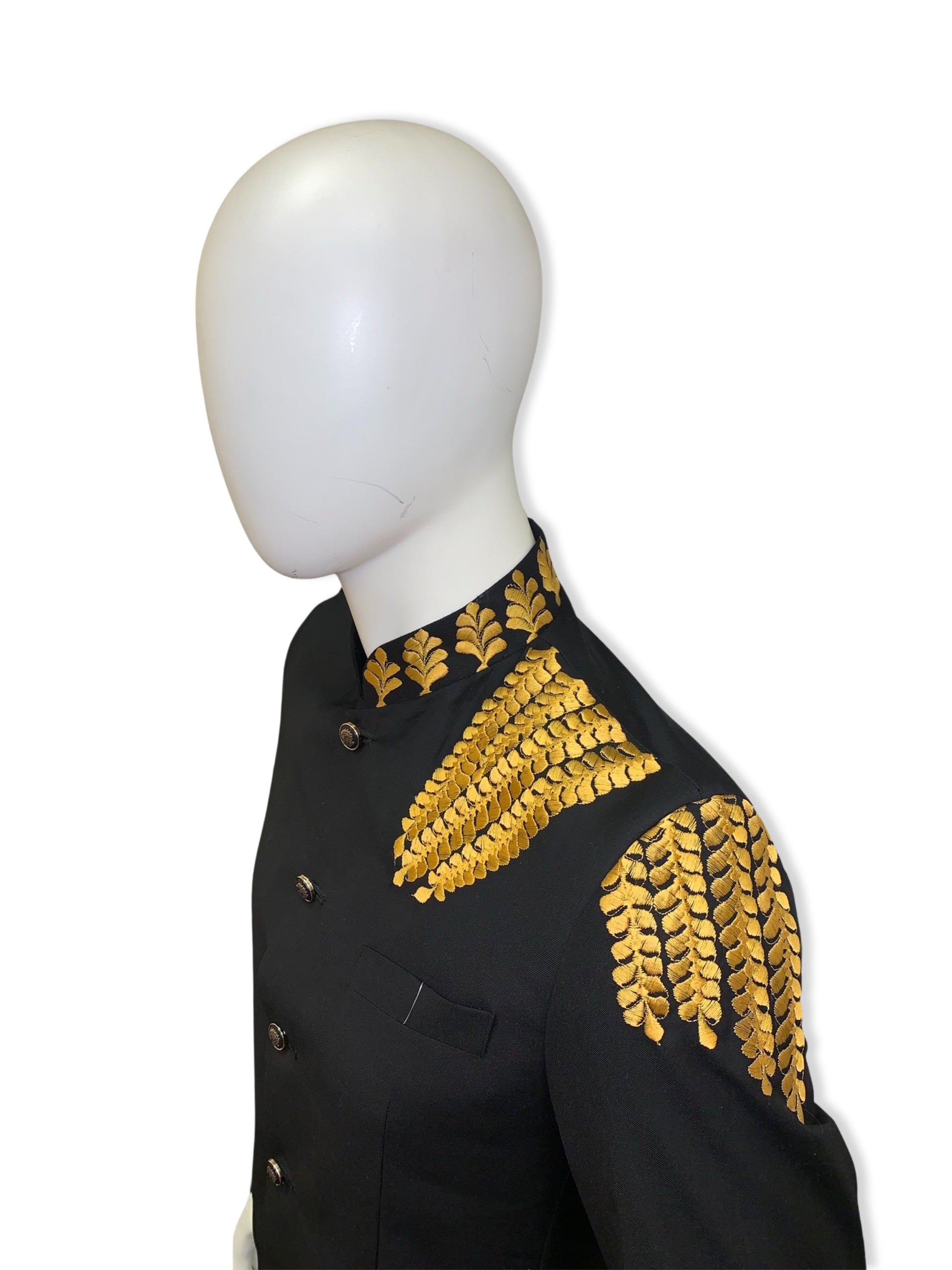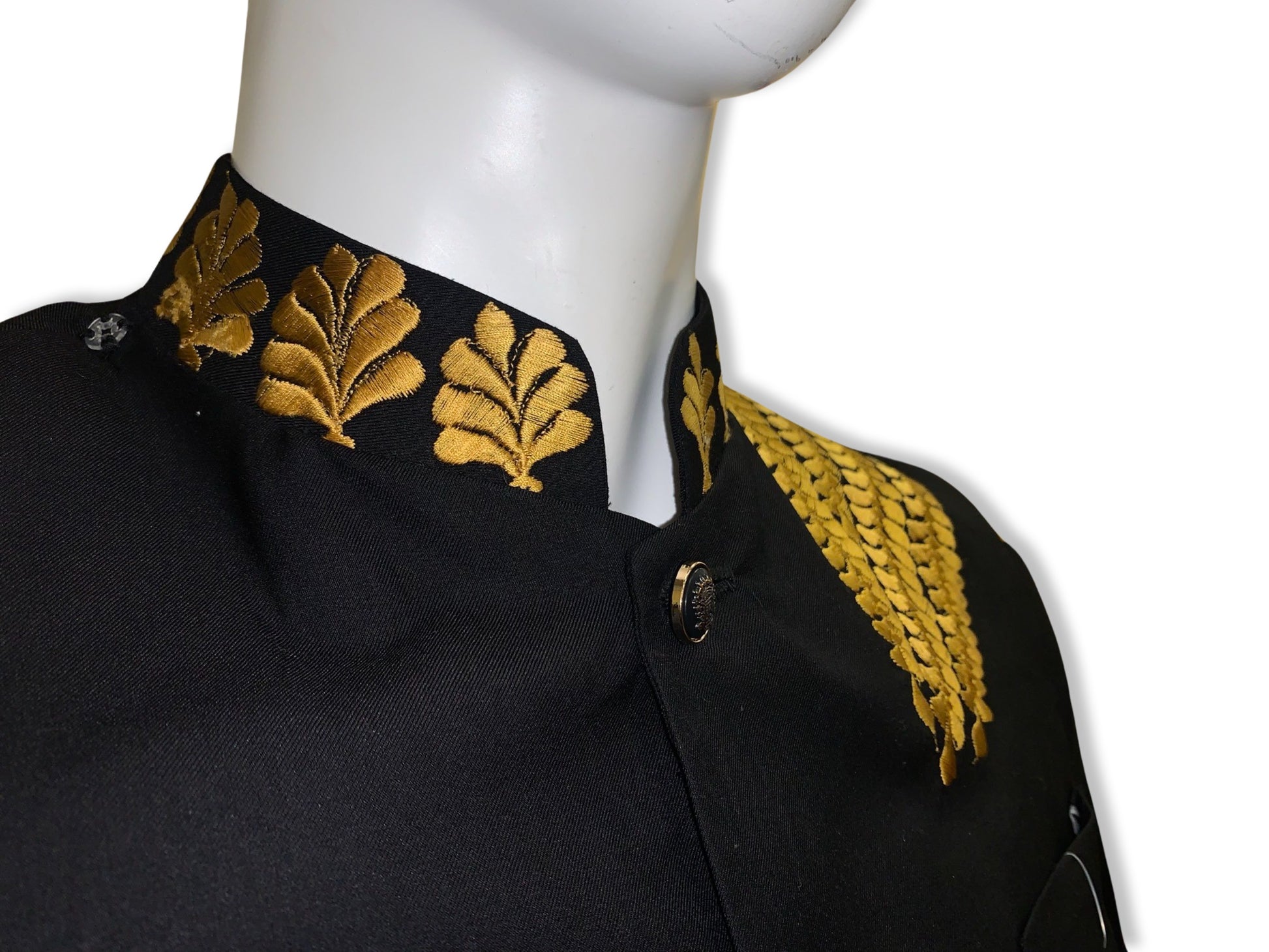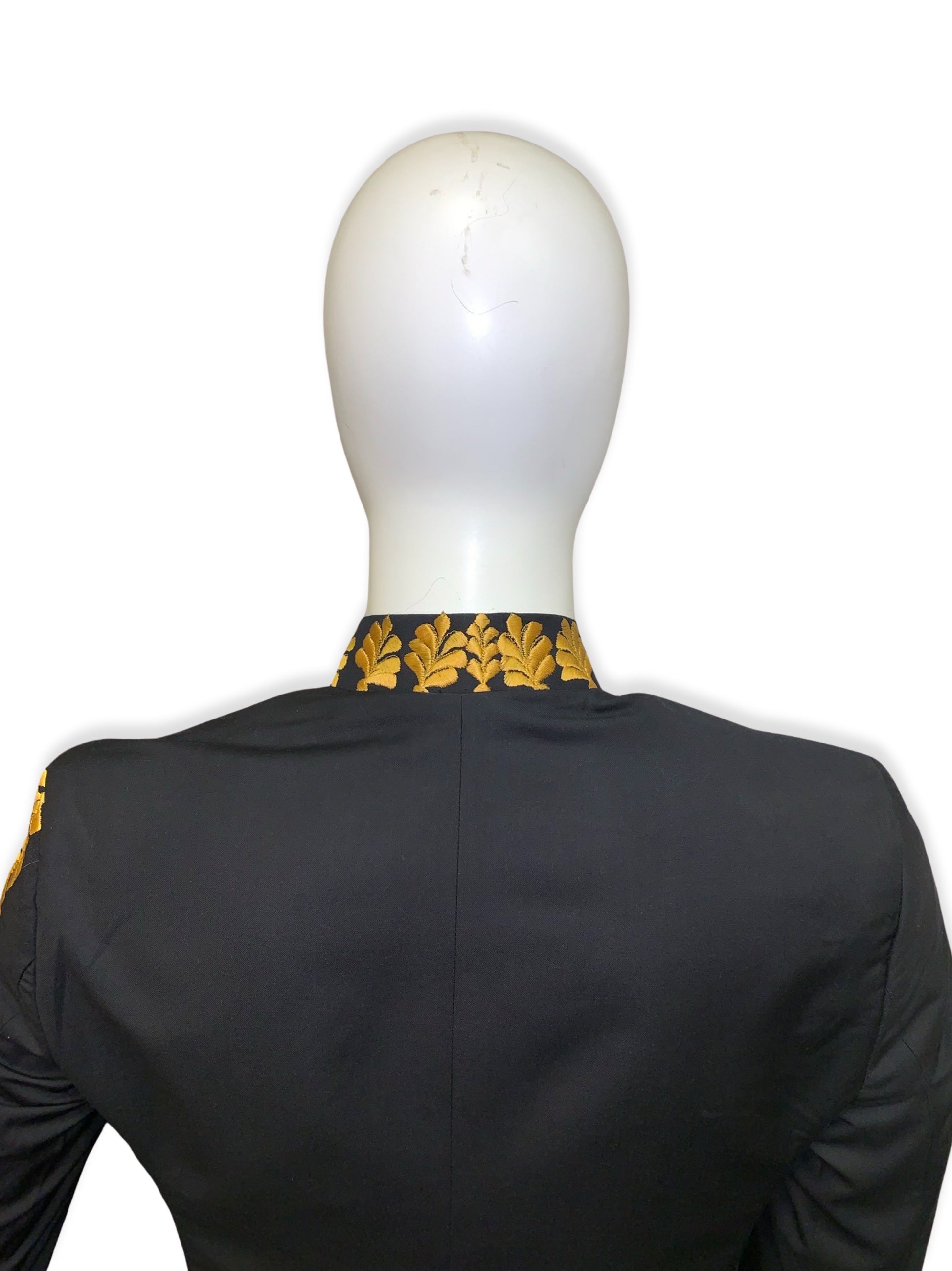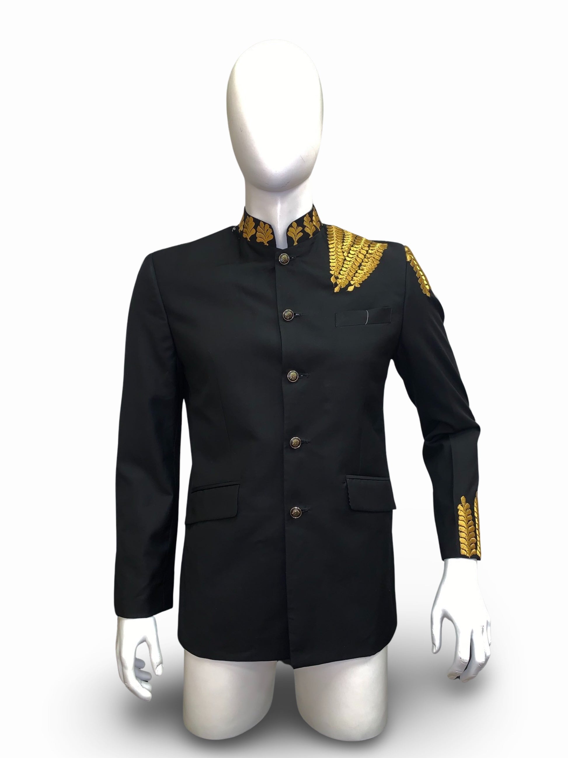 - Button-up; Long sleeve; Front & Inside pockets; Fully lined; Mandarin collar