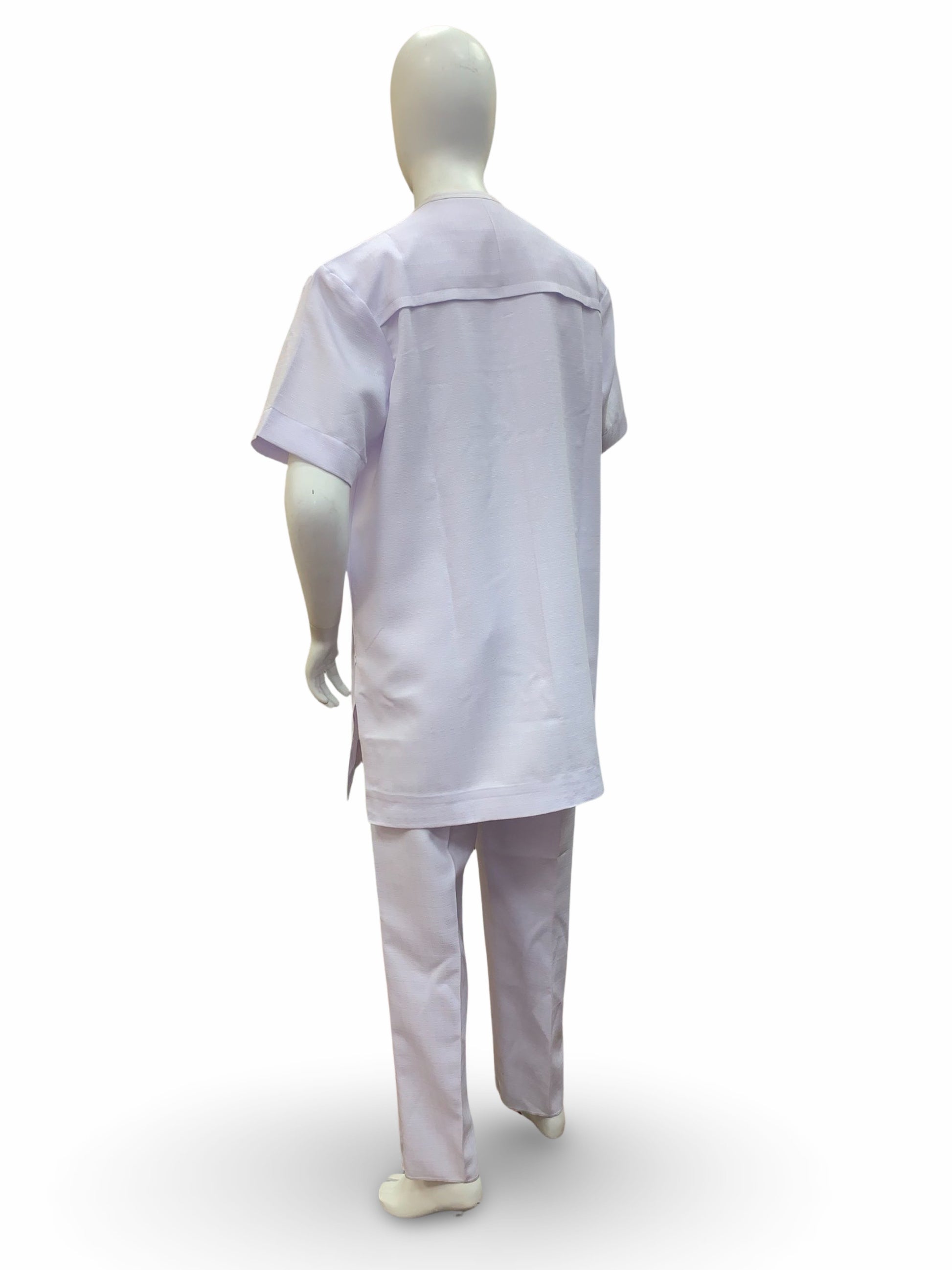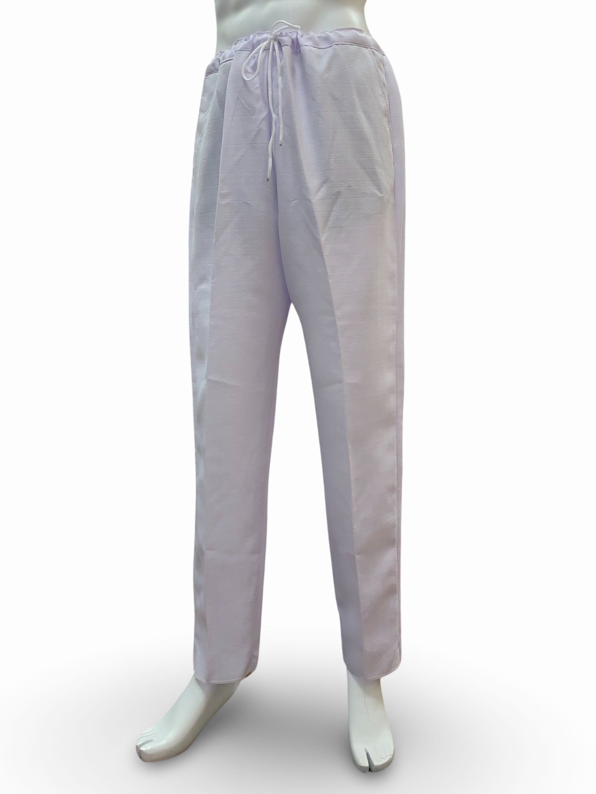 - Drawstring pants with side pockets; no front zipper