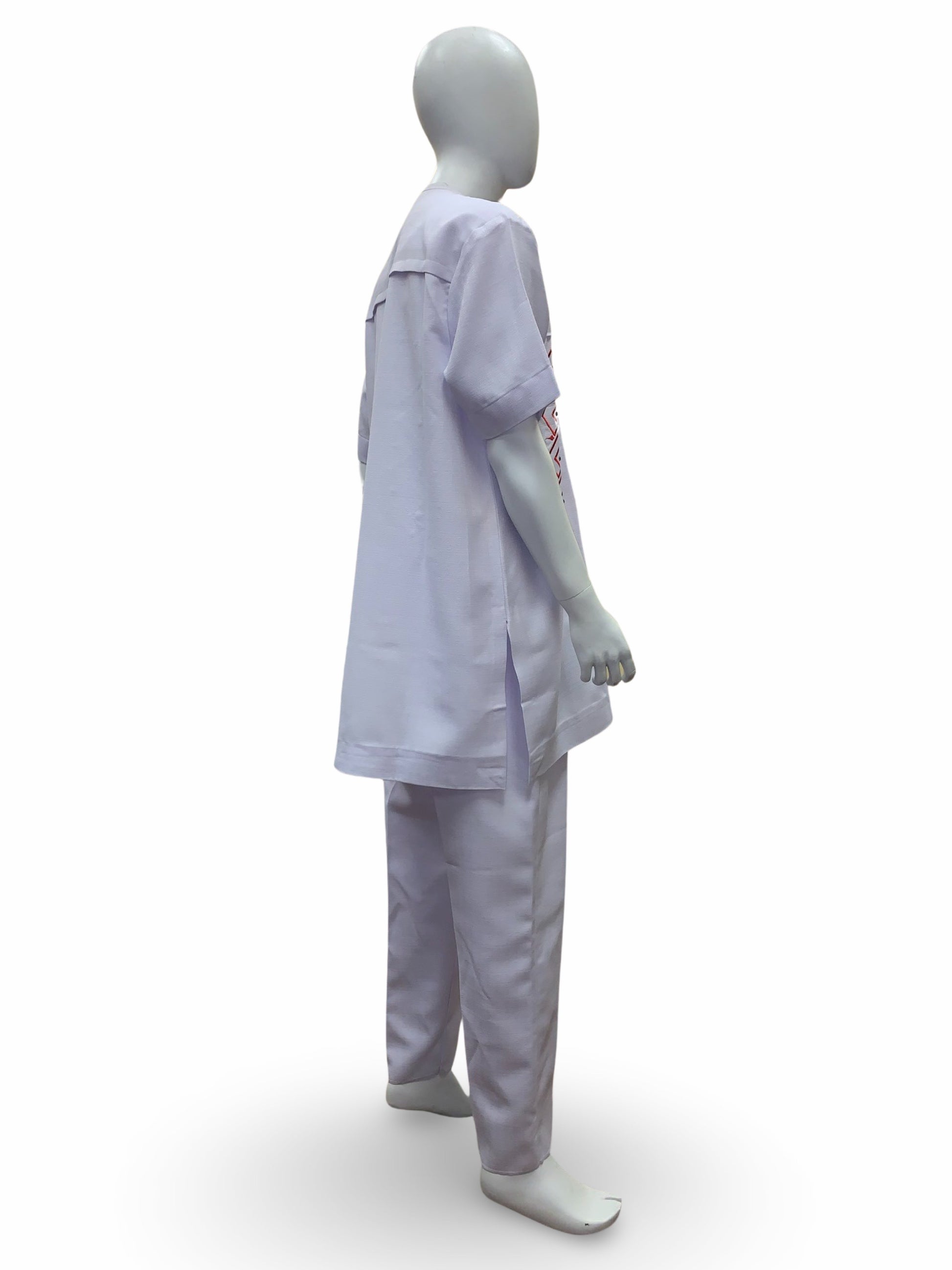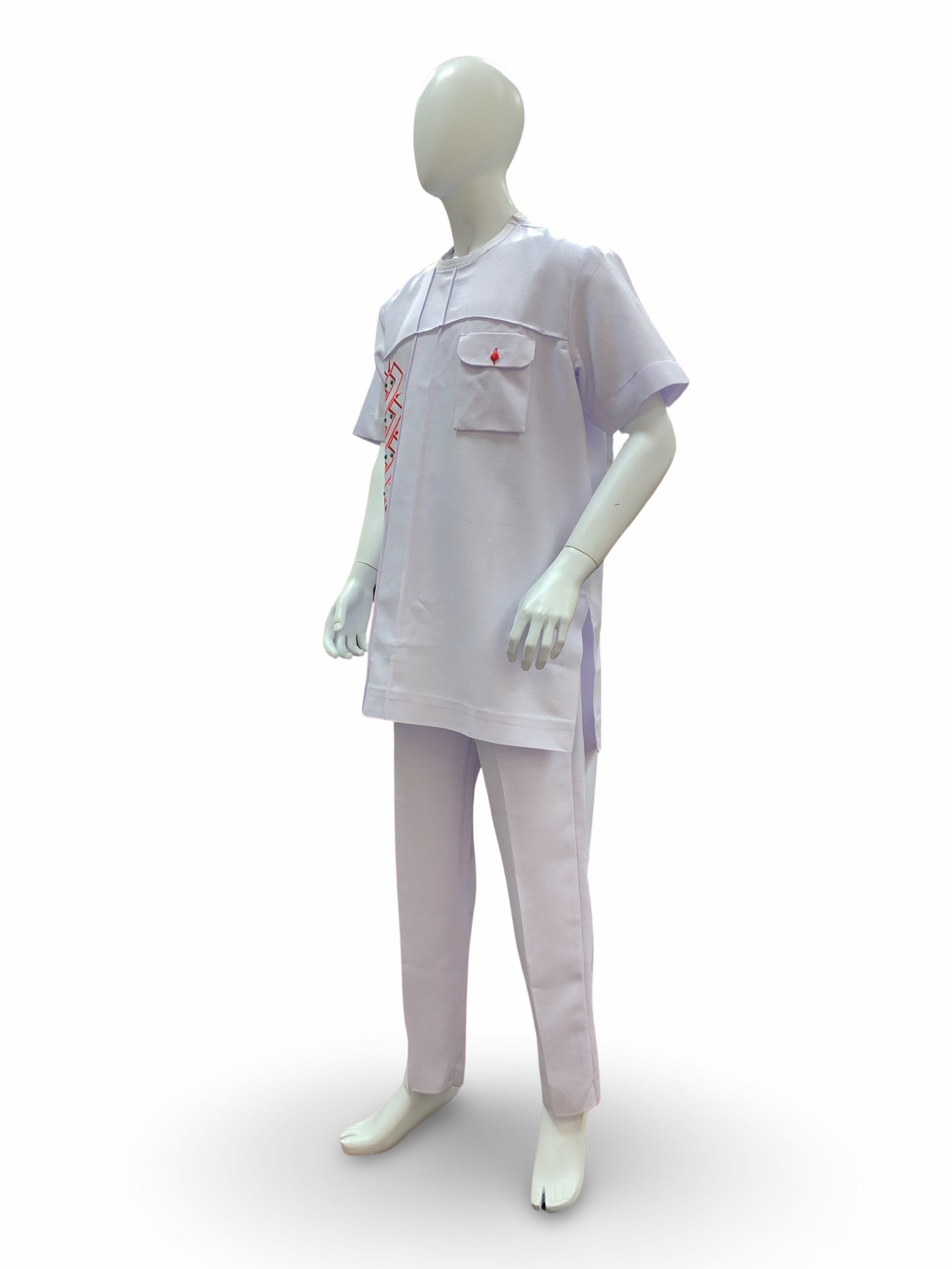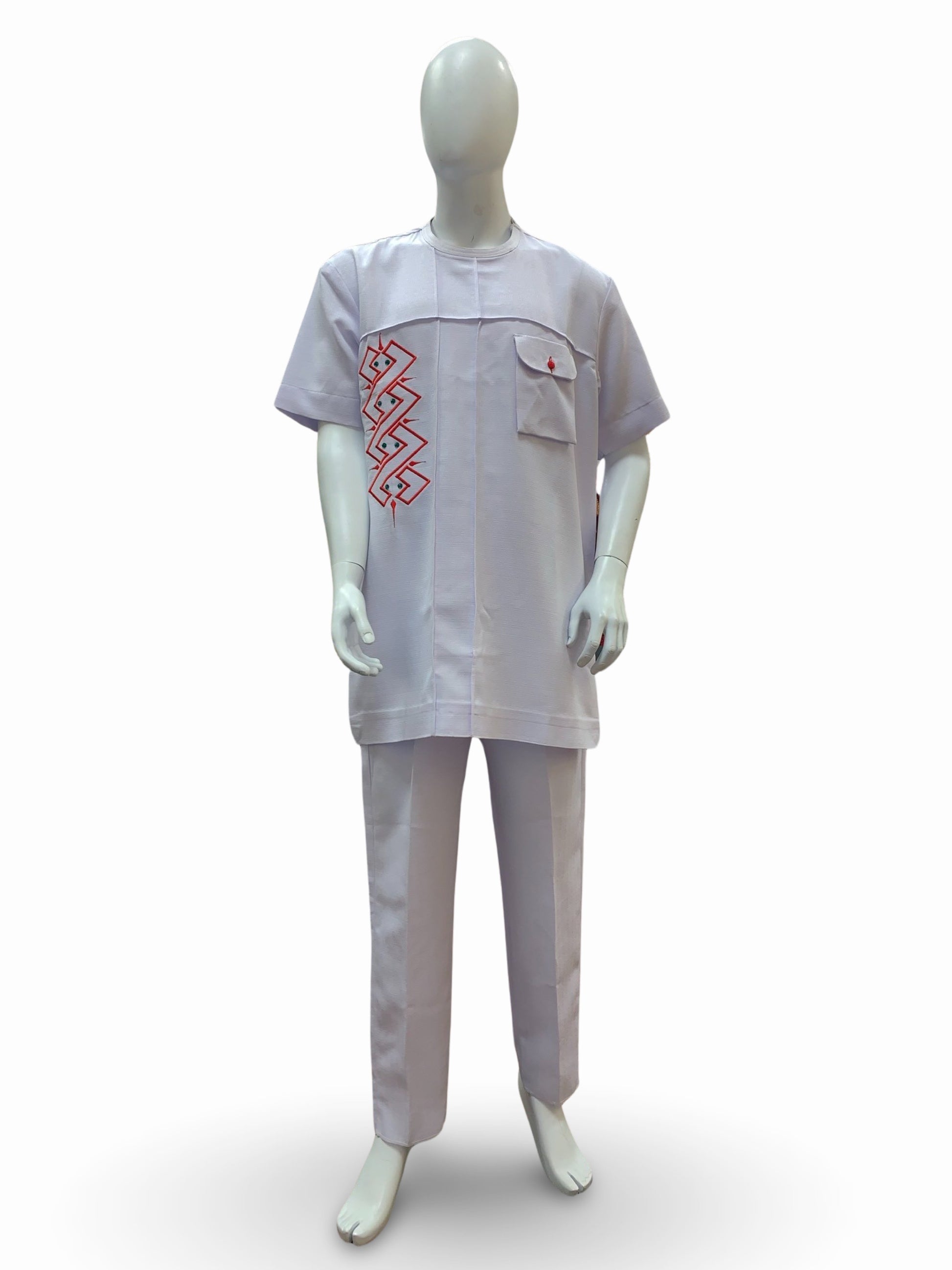 Men’s Formal Embroidery Kaftan 2pc Set (White & Red)
