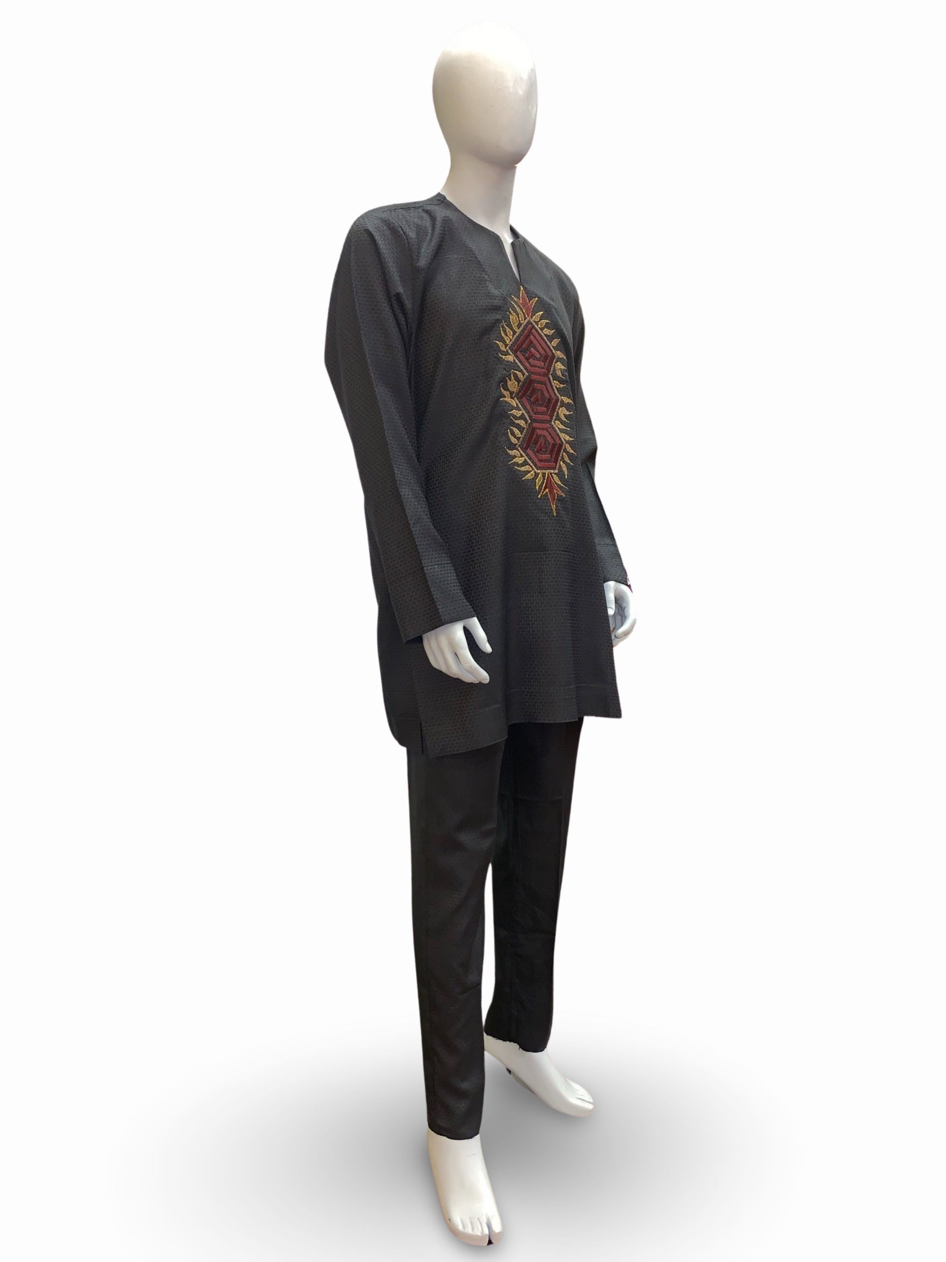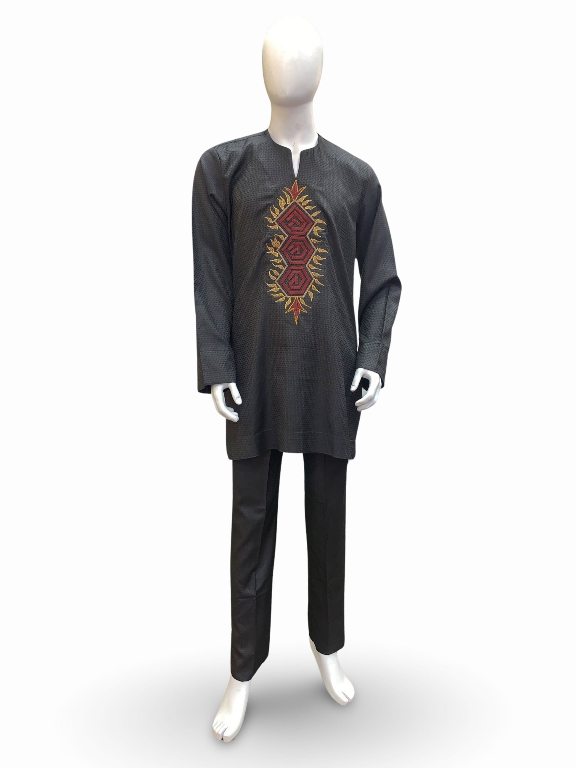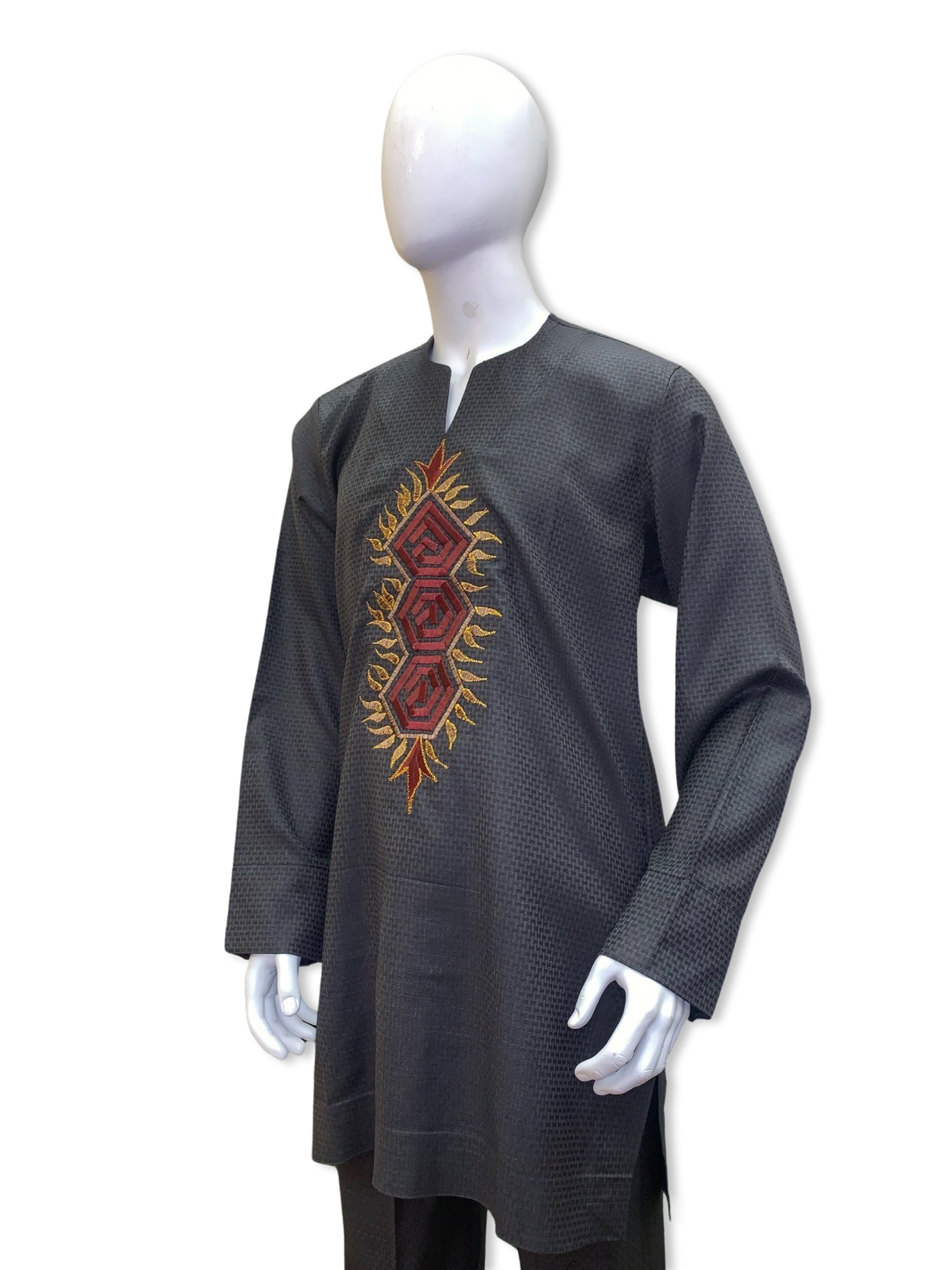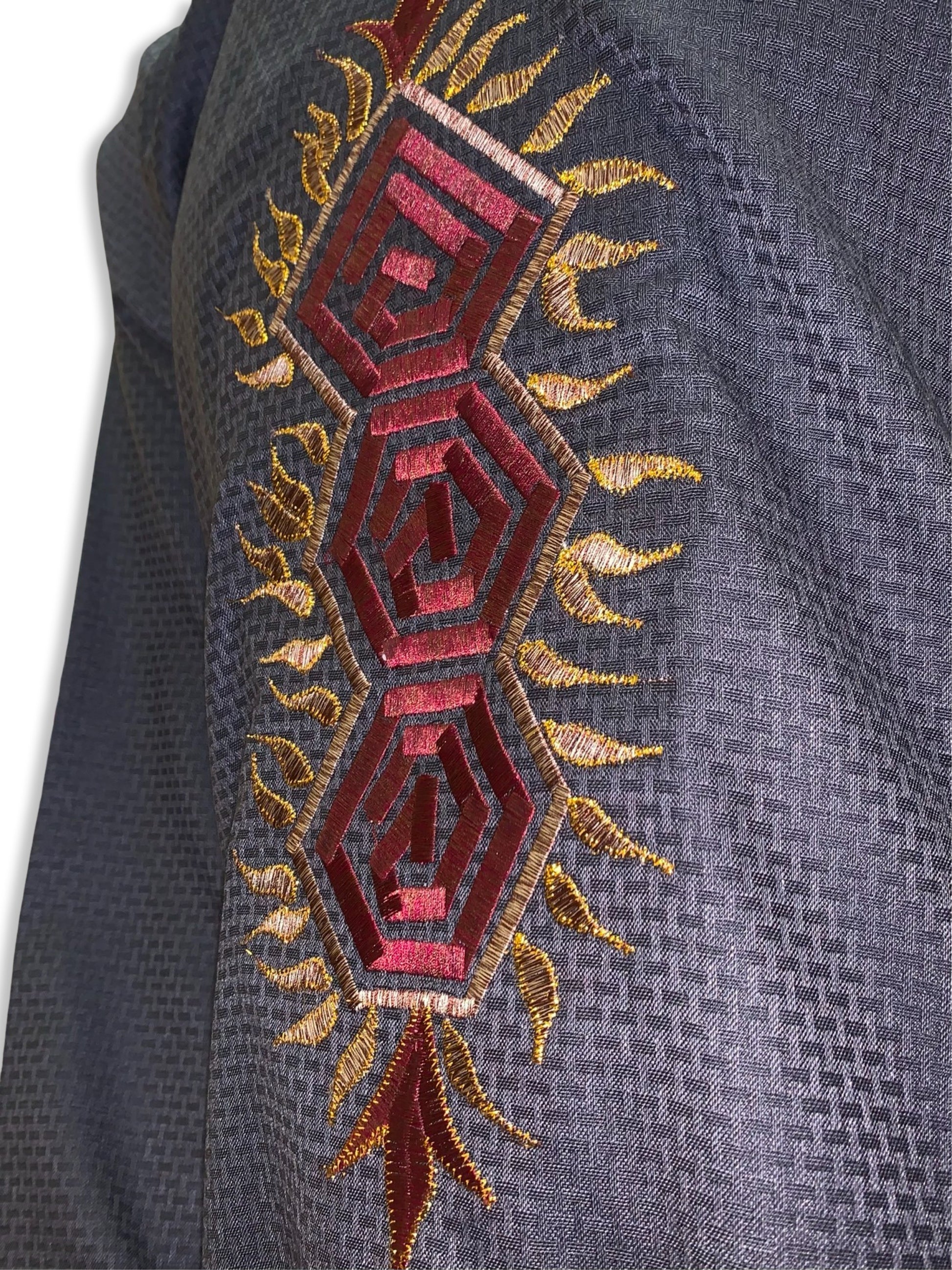 - Color: Grey w/ Burgundy & Gold Embroidery